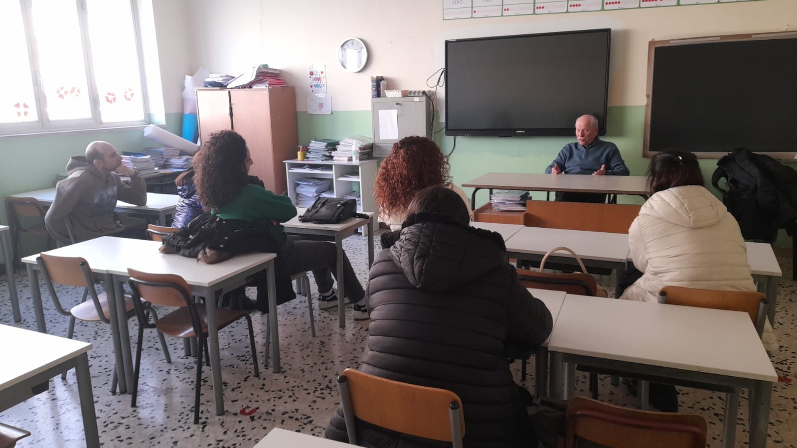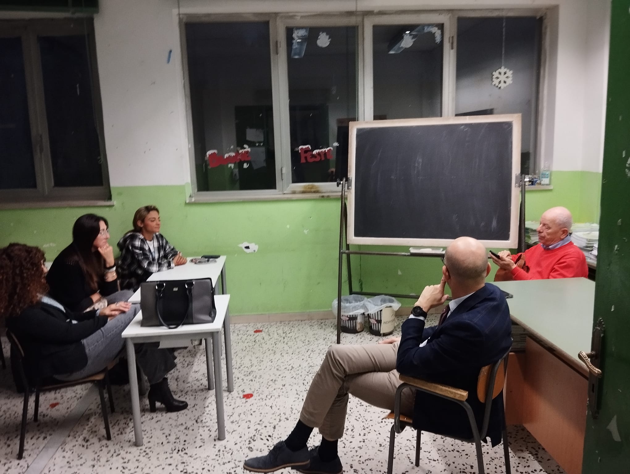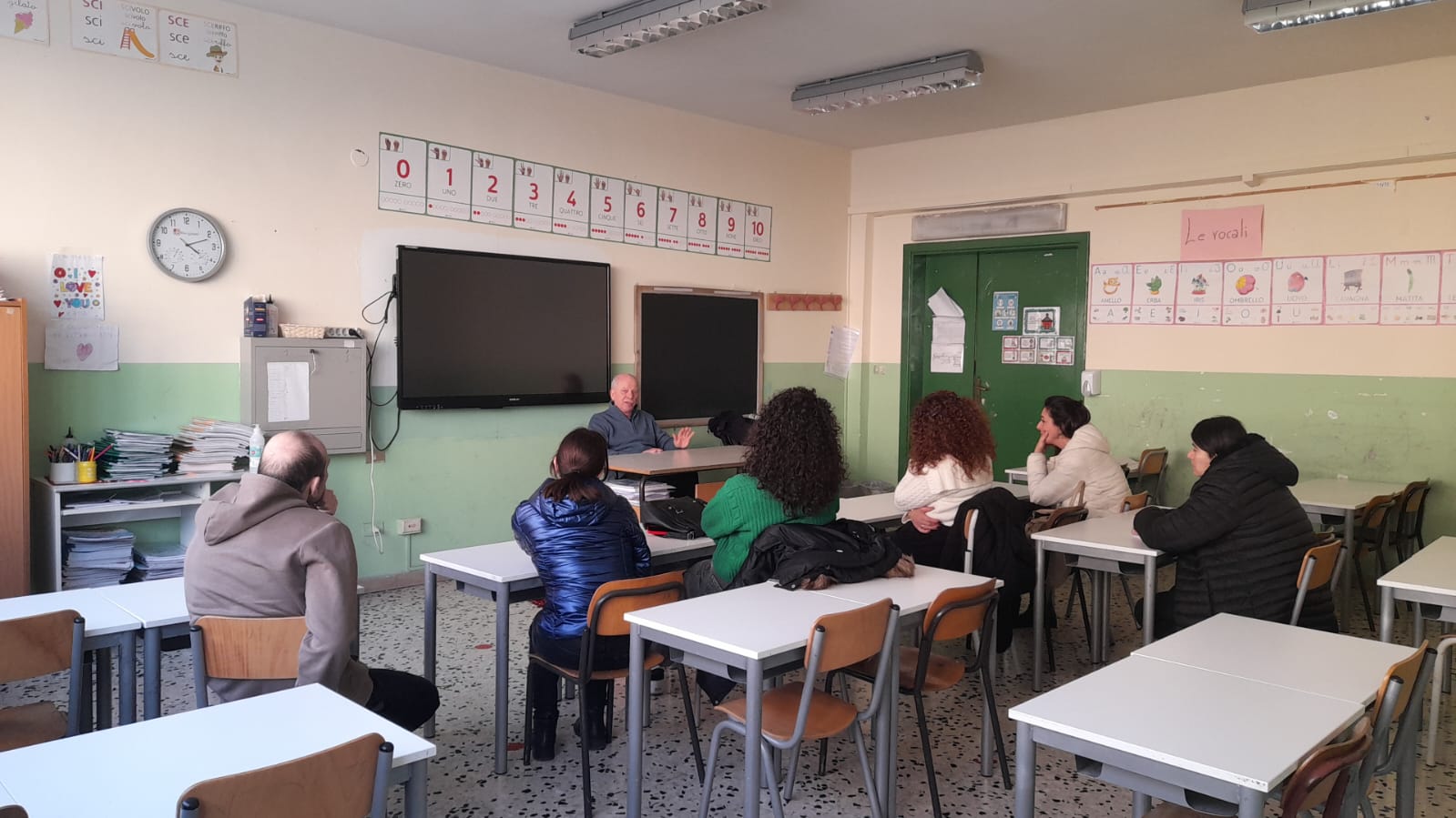 Il responsabile del progetto (dott. Giuseppe Errico) e il presidente Aps Agenzia Arcipelago illustrano i contenuti del progetto ai genitori residenti sul territorio presso il Plesso "Paolo Borsellino" della Direzione Didattica Statale 2 Circolo di Quarto (via Crocillo 154 80010 Quarto)